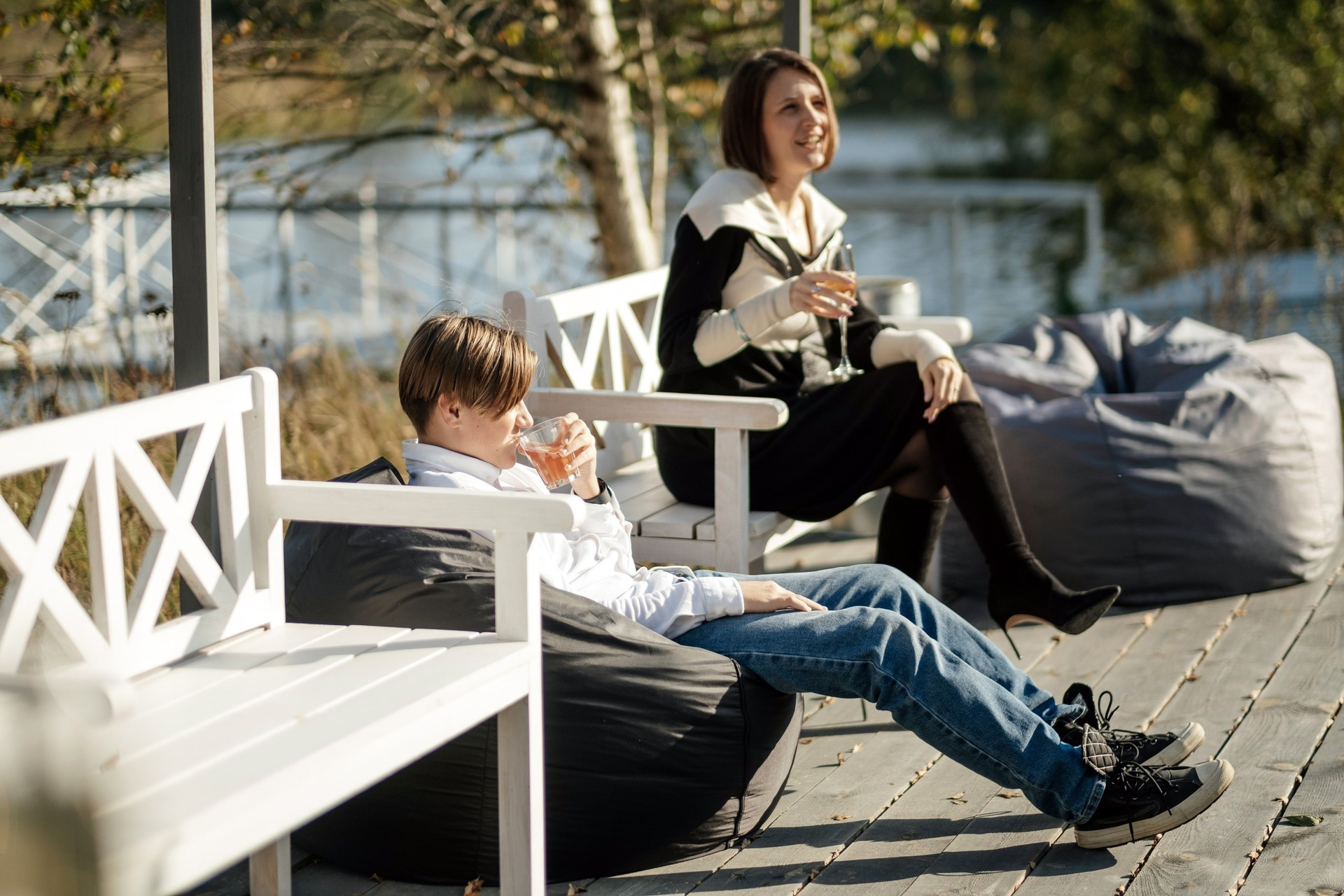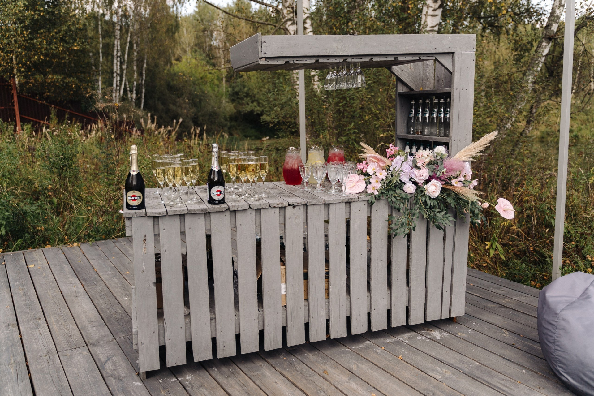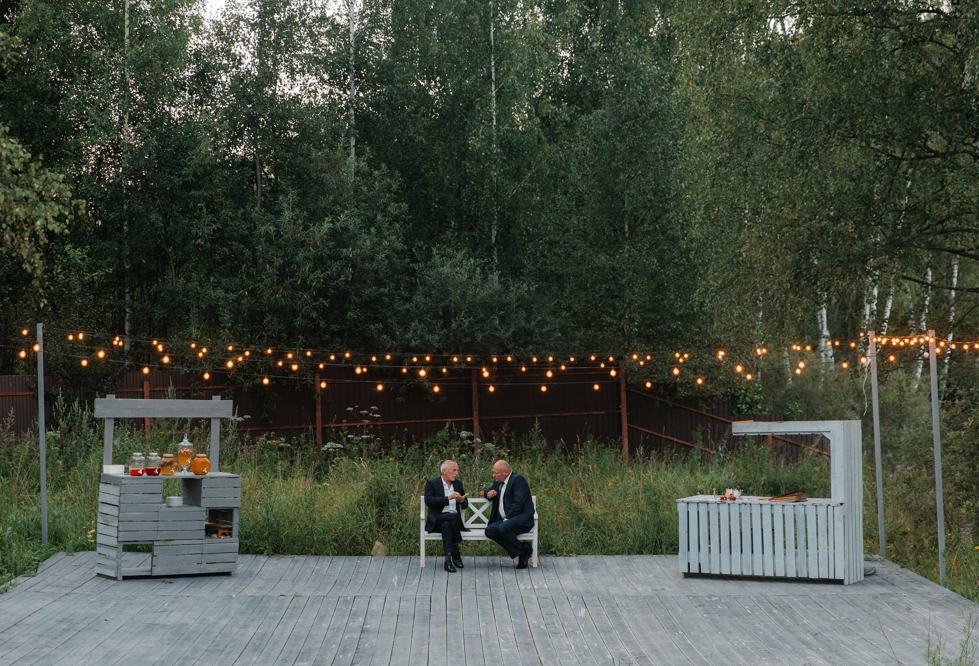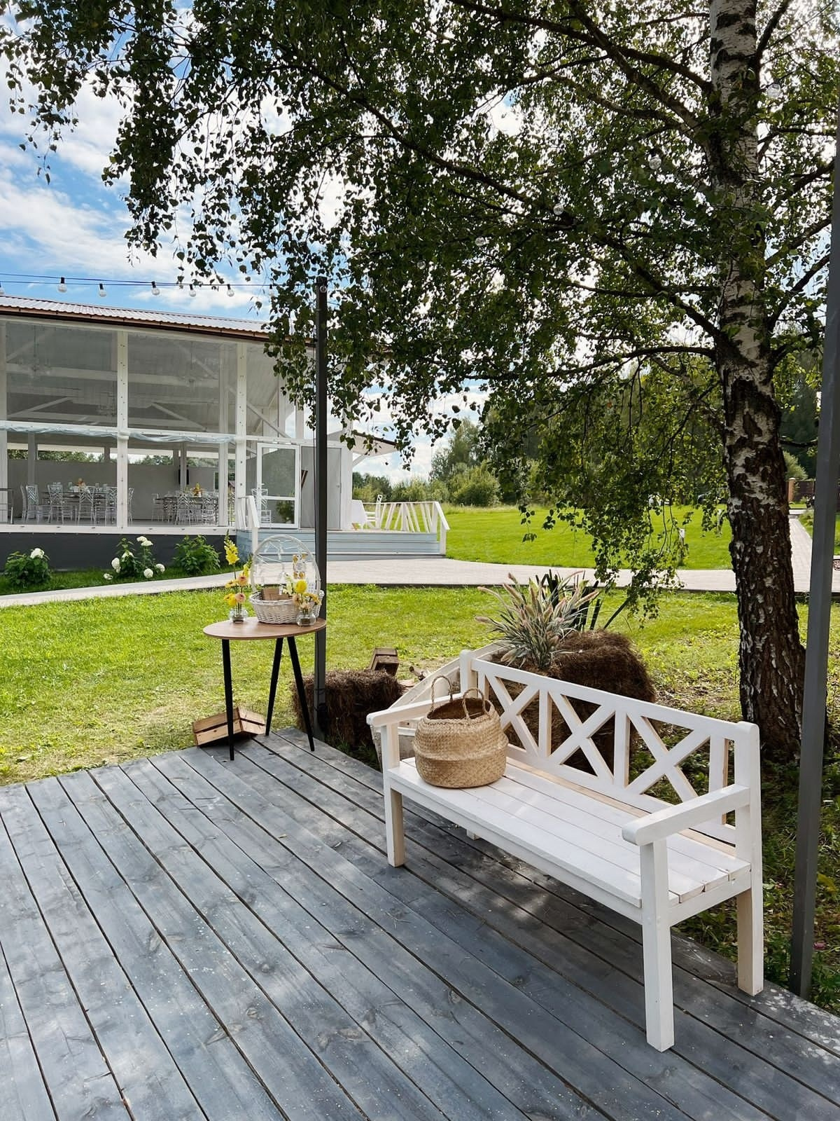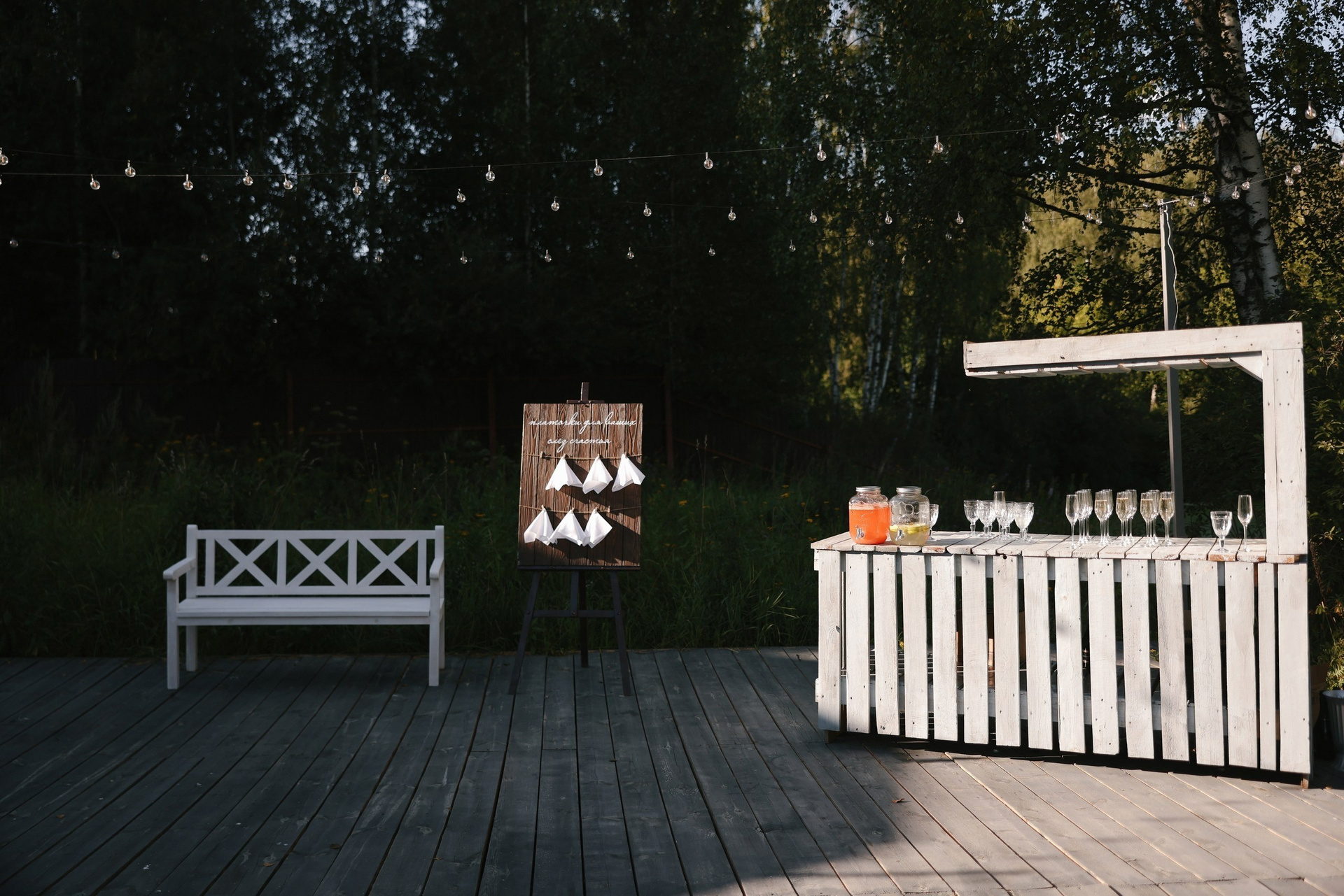 На площадке имеется деревянный настил вблизи Веранды для проведения welcome фуршета.