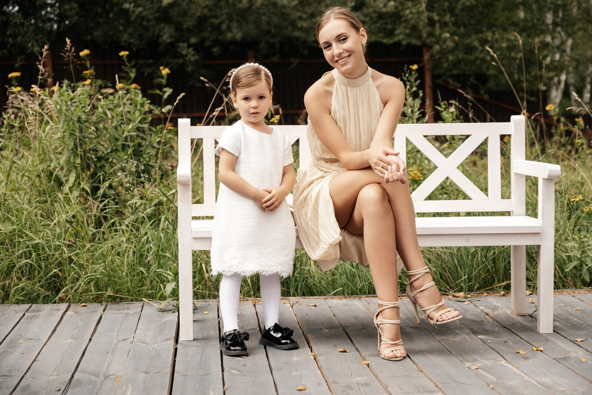 2. Деревянная белая лавочка — 3 шт.